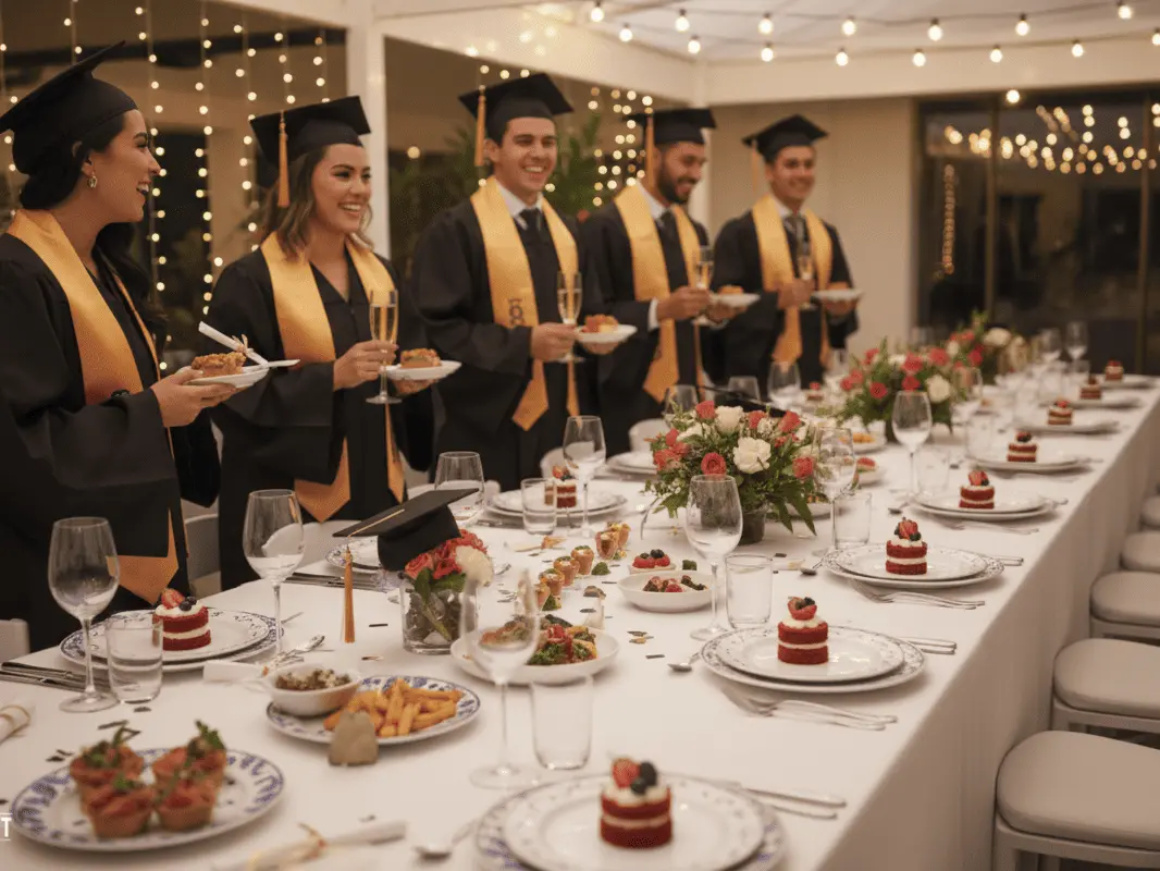 Festeja ese gran logro académico con un buffet dinámico o una comida formal para toda la generación.