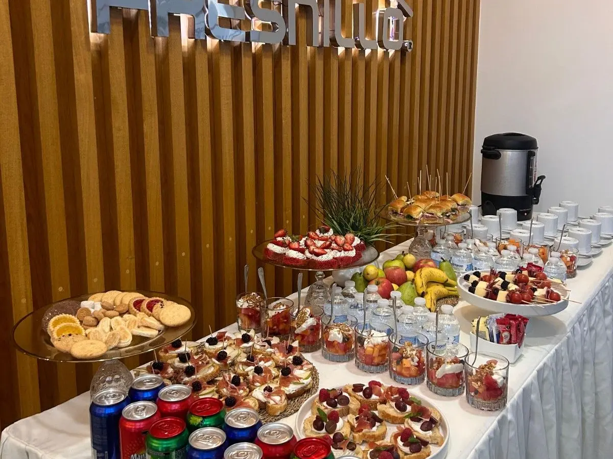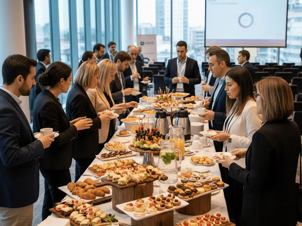 Coffe breaks, box lunch, cenas ejecutivas y banquetes con logística profesional para instituciones y empresas.